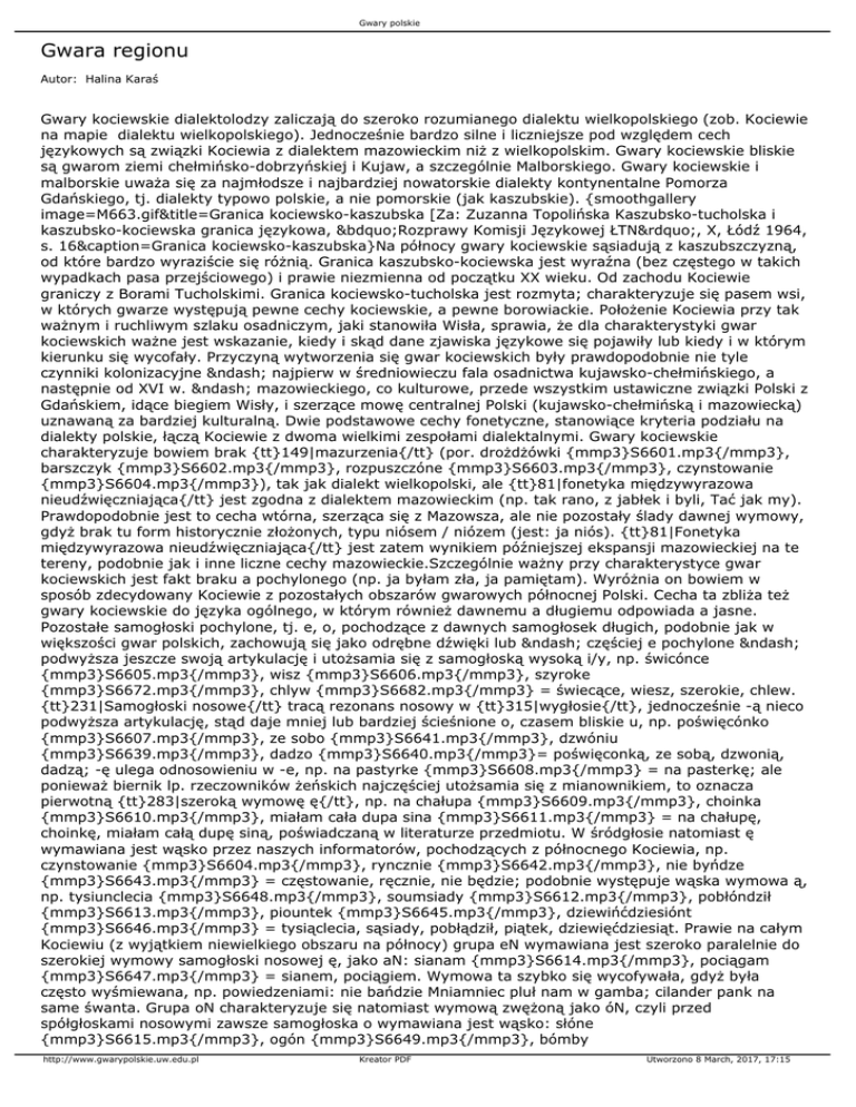 {mmp3}S6604.mp3{/mmp3}), tak jak dialekt wielkopolski, ale {tt}81|fonetyka międzywyrazowa