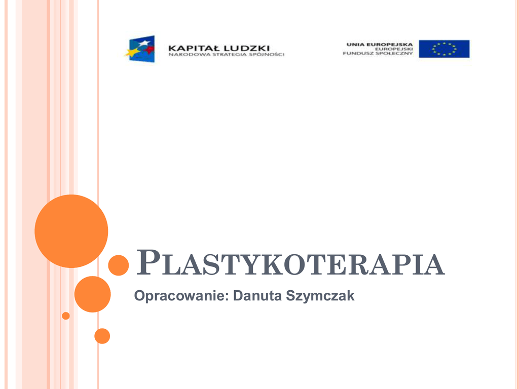 PLASTYKOTERAPIA Opracowanie: Danuta Szymczak UCZESTNICTWO UCZNIÓW W ZAJĘCIACH Z PLASTYKOTERAPII SPRZYJA ROZWIJANIU KREATYWNOŚCI JEST INSPIRACJĄ DLA TWÓRCZYCH ROZWIĄZAŃ PLASTYCZNYCH Daje nam poczucie satysfakcji i samorealizacji POZNANE TECHNIKI PLASTYCZNE ODZWIERCIEDLAMY W NASZYCH PRACACH UDZIAŁ W ZAJĘCIACH SPRZYJA TAKŻE INTEGRACJI GRUPY POTRAFIMY WSPANIALE KONCENTROWAĆ UWAGĘ NA OKREŚLONYM ZADANIU UKAZUJEMY RÓWNIEŻ WYDARZENIA FANTASTYCZNE W zaczarowanym zamku wszystko się zdarzyć może … NASZ CZARODZIEJSKI ZAMEK JEST NIE TYLKO WYJĄTKOWY , ALE RÓWNIEŻ PEŁEN TAJEMNICZYCH OPOWIEŚCI ZAWSZE DĄŻYMY DO POMYŚLNEGO UKOŃCZENIA NASZEJ DZIAŁALNOŚCI PLASTYCZNEJ WIELKA JEST RADOŚĆ Z TWORZENIA !!!