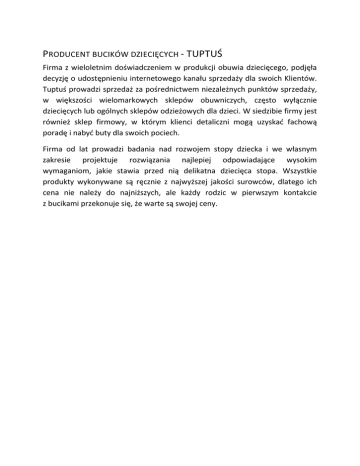 PRODUCENT BUCIKÓW DZIECIĘCYCH - TUPTUŚ Firma z wieloletnim doświadczeniem w produkcji obuwia dziecięcego, podjęła decyzję o udostępnieniu internetowego kanału sprzedaży dla swoich Klientów. Tuptuś prowadzi sprzedaż za pośrednictwem niezależnych punktów sprzedaży, w większości wielomarkowych sklepów obuwniczych, często wyłącznie dziecięcych lub ogólnych sklepów odzieżowych dla dzieci. W siedzibie firmy jest również sklep firmowy, w którym klienci detaliczni mogą uzyskać fachową poradę i nabyć buty dla swoich pociech. Firma od lat prowadzi badania nad rozwojem stopy dziecka i we własnym zakresie projektuje rozwiązania najlepiej odpowiadające wysokim wymaganiom, jakie stawia przed nią delikatna dziecięca stopa. Wszystkie produkty wykonywane są ręcznie z najwyższej jakości surowców, dlatego ich cena nie należy do najniższych, ale każdy rodzic w pierwszym kontakcie z bucikami przekonuje się, że warte są swojej ceny. DYSTRYBUTOR PODRĘCZNIKÓW SZKOLNYCH – PRYMUS Sieć sklepów z książkami, specjalizująca się w sprzedaży podręczników szkolnych (podstawówka, gimnazjum, szkoła średnia) zdecydowała się na dynamiczny rozwój internetowego kanału sprzedaży. W przeszłości firma podejmowała próby sprzedaży internetowej z lepszym lub gorszym skutkiem. Posiada własny sklep internetowy, ale ma również doświadczenia w sprzedaży poprzez platformę aukcyjną Allegro. Z dotychczasowych działań wyciągnięto wniosek, że konkurencja wyłącznie cenowa jest strategią krótkodystansową i nie gwarantuje trwałej przewagi konkurencyjnej. Prowadzi do generowania dużego obrotu, ale nie koniecznie najwyższego możliwego zysku. Prymus jest w stanie zagwarantować dostawę każdego podręcznika dostępnego na rynku. Część podręczników gromadzi we własnym magazynie, co zapewnia bardzo szybką dostawę. Rzadziej nabywane pozycje są natomiast pozyskiwane w ciągu kilku dni od stałego partnera, który zapewnia realizację każdego zlecenia. Firma dysponuje pełną bazą podręczników szkolnych, z kompletnym opisem i grafiką okładki. DYSTRYBUTOR DROBNEGO AGD - MEGAKUCHNIA Nowo powstająca hurtownia akcesoriów kuchennych stawia na rozwój w oparciu o internetowy kanał dystrybucji. Dzięki nawiązanemu partnerstwu Megakuchnia dysponuje szerokim asortymentem drobnego AGD, w atrakcyjnej cenie. Gwarantuje szybką realizację dowolnej ilości przedmiotów. Biorąc pod uwagę powyższe argumenty zdecydowano o zaadresowaniu oferty głównie do sklepów i innych punktów dystrybucji asortymentu kuchennego. Jednak szeroki wachlarz produktów i dostępność przedmiotów, które dla wielu użytkowników mogą być trudne do znalezienia w sklepach działających w ich okolicy, skłania właściciela do utrzymania dostępności produktów również w zakupie detalicznym. DYSTRYBUTOR WIN – PIWNICZKA ZAGŁOBY Hurtownia napojów alkoholowych Piwniczka Zagłoby przez lata działalności na rynku, wyspecjalizowała się w imporcie i dystrybucji win. Nawiązane partnerstwa zagraniczne pozwalają dostarczać na polski rynek interesujące produkty, które rzadko dostępne są u innych dystrybutorów i w sklepach stacjonarnych. Dużym atutem firmy jest również przystępna cena oferowanych produktów i ogromna ilość skatalogowanych pozycji. Ciekawie opisanych win, sparametryzowanych i zwizualizowanych dobrej jakości fotografią. W Piwniczce Zagłoby pracują pasjonaci wina, którzy nie tylko zawodowo, ale również hobbystycznie zajmują się tematyką winiarstwa. Są certyfikowanymi sommelierami i chętnie dzielą się swoją wiedzą, promując kulturę picia wina.