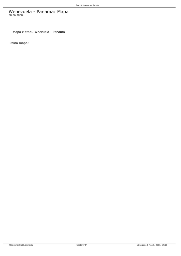 Samotnie dookoła świata Wenezuela - Panama: Mapa 08.06.2008. Mapa z etapu Wnezuela - Panama Pełna mapa: http://mantra28.pl/marta Kreator PDF Utworzono 8 March, 2017, 17:16