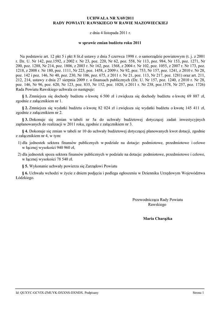 UCHWAŁA NR X/69/2011 RADY POWIATU RAWSKIEGO W RAWIE