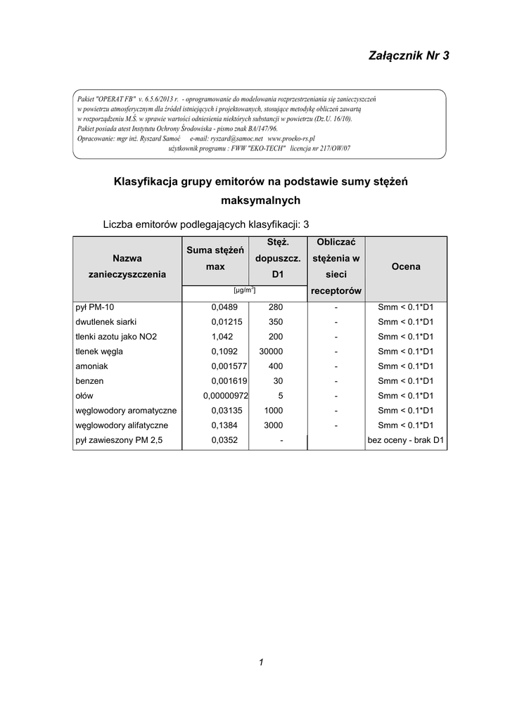 5. Wyliczenie zanieczyszczeń