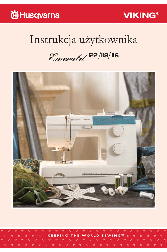 Instrukcja uůytkownika KEEPING THE WORLD SEWING™ INSTRUKCJA BEZPIECZNEJ OBSâUGI Niniejsza domowa maszyna do szycia speânia wymagania normy IEC/EN 60335-2-28. PodãĀczenie do sieci Niniejsza maszyna do szycia musi byý podâĊczona do sieci o napięciu wskazanym na tabliczce znamionowej zasilania. Uwagi dotyczĀce bezpieczeļstwa • Maszyna do szycia nie jest przeznaczona do uůytku przez osoby (wâĊcznie z dzieými) o obniůonej sprawnoœci Àzycznej lub umysâowej, bĊdŭ nie posiadajĊce dostatecznego doœwiadczenia i wiedzy, chyba ůe pod nadzorem osoby odpowiedzialnej za ich bezpieczeľstwo lub po uzyskaniu od tejůe osoby wskazówek dotyczĊcych obsâugi maszyny do szycia. • Naleůy dopilnowaý, by dzieci nie bawiây się maszynĊ do szycia. • PodâĊczonej do sieci maszyny do szycia nie wolno pozostawiaý bez uwagi. • Po uůyciu i przed kaůdym czyszczeniem maszyny naleůy jĊ zawsze odâĊczaý od zasilania. • W celu wykonania jakichkolwiek czynnoœci w pobliůu igây, takich jak nawlekanie nici, wymiana igây,lub wymiana stopkimaszynę naleůy wyâĊczyý przeâĊcznikiem do pozycji „0”. • W przypadku uszkodzenia przewodu zasilajĊcego lub wtyczki korzystanie z maszyny do szycia jest zabronione. • Pamiętaj, ůeby nie zbliůaý palców do ruchomych częœci maszyny. Naleůy zachowywaý szczególnĊostroůnoœý w pobliůu igây maszyny do szycia. • Korzystaj z niniejszej maszyny do szycia jedynie w celu, do jakiego zostaâa ona przeznaczona.Uůywaj wyâĊcznie akcesoriów opisanych w niniejszej instrukcji i zalecanych przez producenta. • Przed wymianĊ ůarówki zawsze wyjmij najpierw wtyczkę z gniazdka sieciowego. ZuůytĊ ůarówkę wymieniaj na nowĊ tego samego typu (pod względem napięcia i mocy). 1. Zuůyty sprzęt nie moůe byý umieszczany razem z innymi odpadami. 2. Zuůyty sprzęt naleůy przekazaý do punktu zbierania zuůytego sprzetu elektrycznego lub sprzedawcy, przy zakupie nowego sprzętu tego samego rodzaju. 3. Umieszczony obok symbol kosza oznacza, iů zuůyty sprzęt zostanie poddany procesowi przetwarzania lub odzysku, co zapewnia ochronę zdrowia ludzi oraz ochronę œrodowiska. 4. Za nie przekazanie zuůytego sprzętu punktom zbierania lub umieszczenie go âĊcznie z innymi odpadami grozi kara grzywny / Ust. z dn. 29.07.2005. o zuůytym sprzęcie elektrycznym i elektronicznym. Spis treŐci Budowa maszyny ...........................................2 Stóâ powiększajĊcy pole pracy .....................3 Szycie na wolnym ramieniu .........................3 Wyposaůenie maszyny ..................................4 Przygotowanie do szycia 5-20 PodâĊczenie maszyny do sieci .....................5 Regulacja prędkoœci szycia ...........................6 Górna i dolna pozycja igây...........................6 Tabelka z zaleceniami uâatwiajĊcymi dobór parametrów szycia .............................7 PrzeâĊcznik do szycia wstecz .......................8 Regulacja docisku stopki ..............................8 Opuszczanie zĊbków transportera .............8 Podnoszenie i opuszczanie stopki ...............9 Regulacja docisku stopki ..............................9 Wymiana Igây ...............................................10 Mocowanie górnej szpulki na trzpieniu...................................................11 Wyjmowanie dolnej szpulki .......................11 Napeânianie dolnej szpulki ........................12 Zakâadanie dolnej szpulki ..........................13 Nawlekanie ...................................................14 Nawlekacz igây .............................................15 WyciĊganie dolnej nici ................................16 Œciegi .............................................................17 Wybór Œciegu ...............................................18 Dâugoœý œciegu ............................................18 Regulacja gęstoœci œciegu elastycznego .................................................19 Szerokoœý Œciegu .........................................19 Róůne pozycje igây ......................................19 Regulacja napręůenia górnej nitki .............20 Podstawowe operacje 21-23 Œcieg prosty .................................................21 Zakoľczenie szycia .....................................22 Linie prowadzĊce na pâytce œciegowej .....23 Obracanie materiaâu ...................................23 ŏciegi UŮytkowe 24-38 Podstawowy zygzak .................................. 24 Zygzak trójstopniowy ............................... 24 Wykonywanie szwu i obrzucanie ............. 24 Œcieg prosty wzmocniony ......................... 25 Przyszywanie guzików .............................. 25 Automatyczne obszywanie dziurek ......... 26 Dziurka wzmocniona kordonkiem .......... 30 Ręczne obszywanie dziurek ..................... 31 Wszywanie zamka ...................................... 33 Œcieg kryty ................................................... 37 ŒlizgajĊca się stopka H .............................. 38 Prowadnik do pikowania ........................... 38 Stopki tylko do modelu 122 38-39 Przeŭroczysta Stopka B ............................. 38 Stopka do marszczenia .............................. 39 Stopka do áĊczenia 1/4” ......................... 39 Konserwacja Maszyny 40-42 Czyszczenie chwytacza i zĊbków transportera ................................................. 40 Wymiana uchwytu dolnej szpulki ........... 41 Wymiana ůarówki ....................................... 41 Usuwanie usterek ....................................... 42 1 7 Budowa maszyny 6 8 5 4 2 3 1 9 10 11 1. 2. 3. 4. 5. 6. 7. 23 8. 9. 10. 11. 12. 22 13. 21 16 17 18 19 20 26 27 25 24 28 12 13 14 15 29 30 37 36 35 34 31 32 33 31.a 2 33.a Ogranicznik napeâniania dolnej szpulki Trzpieľ do napeâniania dolnej szpulki Otwór na dodatkowy trzpieľ KrĊůek blokujĊcy szpulkę nici Trzpieľ na szpulkę nici Prowadnik do napeâniania dolnej szpulki Dŭwignia podnoszenia 
