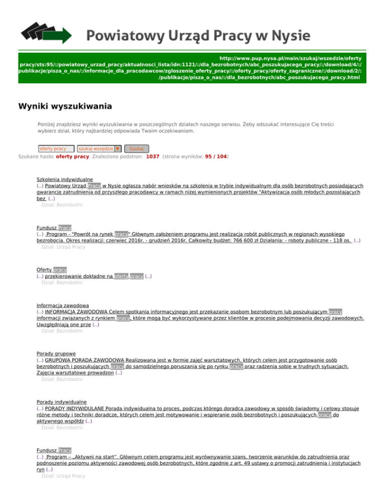 Wyniki wyszukiwania - Powiatowy Urząd Pracy w Nysie