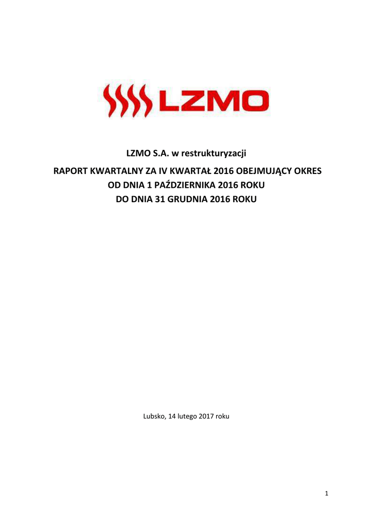 LZMO S.A. w restrukturyzacji RAPORT KWARTALNY ZA IV