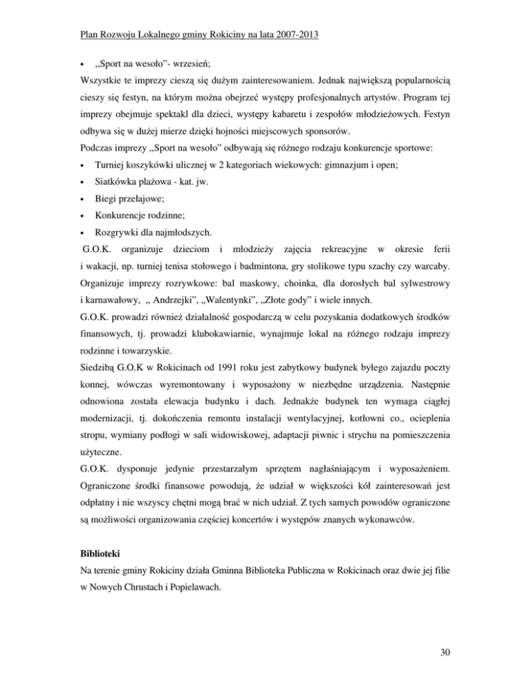 Plan Rozwoju Lokalnego gminy Rokiciny na lata