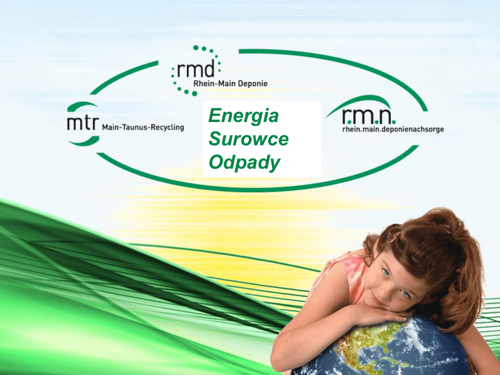 Energia Surowce Odpady Struktura udziałowców MTR - RMD - RMN Bioma i SAVAG 50% RMD Powiat Main Taunus Rhein-Main Deponie GmbH 50% 75,02% Powiat Hochtaunus miasto Hochheim 9,99% 66,66% 25% MTR RMN SAVAG Main-Taunus-Recycling GmbH Rhein-Main Deponienachsorge GmbH Südhessische Abfallverwertungs GmbH 14,99% miasto Flörsheim 33,33 % Bioma Biomasse Rhein-Main GmbH 33,3 % SOH Stadtwerke Offenbach Holding GmbH 100 % Kolejne slajdy: Struktura udziałowców, struktura RMA, przynależności © RMD, MTR, RMN strona 2 Ostatnia aktualizacja: wrzesień 2013 miasto Offenbach Obszary działalności RMD Eksploatacja składowisk Rhein-Main Deponiepark w Wicker oraz Deponiepark w Brandholz Eksploatacja punktów zbiórki surowców wtórnych Usługi logistyczne Przetwórnia biomasy w Grävenwiesbach; partner: Kilb Entsorgung GmbH Przetwórnia biomasy w Weilbach ; partner: Kilb Entsorgung GmbH Sortownia surowców wtórnych / wytwórnia paliw alternatywnych; partner: KKM Wertstoffsortiergesell. mbH Przetwórnia drewna z odzysku; partner: KKM Wertstoffsortiergesellschaft mbH Elektrownia na biogaz - składowisko w Wicker Instalacja na agrogaz - składowisko w Brandholz house of clean energy e. V. © RMD, MTR, RMN strona 3 Ostatnia aktualizacja: wrzesień 2013 Obszary działalności MTR Przetwarzanie i recykling żwirownie partner: Gaul GmbH przetwórstwo żużlu partner: FES Frankfurter Entsorgungs- und Service GmbH elektrownia na biomasę partner: Biomasse Rhein-Main GmbH centrum rekultywacji gleby (oczyszczanie gleby, magazyn odpadów inercyjnych i stabilizacja) partner: Umweltschutz West GmbH, esm GmbH i VESTA GmbH przetwórstwo składowiskowe rekultywacja szkód krajobrazowych i terenów zdegradowanych © RMD, MTR, RMN strona 4 Ostatnia aktualizacja: wrzesień 2013 Obszary działalności RMN Obsługa uzupełniająca dla 5 składowisk Eksploatacja Elektrowni na gaz wysypiskowy Wicker / Brandholz Instalacje uzdatniania wody Eksploatacja instalacji fotowoltaicznych Controlling środowiskowy © RMD, MTR, RMN strona 5 Ostatnia aktualizacja: wrzesień 2013 Dane RMD • 63 zatrudnionych (2 uczniów nauki zawodu) • obroty w 2013: 30,4 mln € MTR 126 zatrudnionych • 35 zatrudnionych 57,7 mln € obrotu • obroty w 2013: 17,1 mln € RMN • 36 zatrudnionych • obroty w 2013: 10,2 mln € Wspólnie w roku 2013 poruszyliśmy ok. 2,7 mln t materiału Certyfikaty grupy firm Członkostwa grupy firm © RMD, MTR, RMN strona 6 Ostatnia aktualizacja: wrzesień 2013 Rhein-Main Deponiepark instalacja do przetwarzania drewna z odzysku instalacja fotowoltaiczna zewnętrzna przetwórnia żużlu instalacja na biogaz silniki na gaz wysypiskowy instalacje ORC elektrownia na biomasę instalacja oczyszczania gleby 7 Energie odnawialne w roku 2013 - podsumowanie Obiekt Moc zainstalowana Wytworzona energia w kWh 2013 Możliwości zaopatrzenia Osoby2 Zaoszczędzone emisje CO2 (w t CO2)3 (liczba gospodarstw domowych)1 Elektrownia na biomasę w Wicker 15 MW 118 490 000 33 854 101 563 123 526 Elektrownia na biogaz 1,4 MW 7 939 108 2 268 6 805 8 435 Elektrownia na gaz wysypiskowy w Wicker 3,8 MW 20 900 657 5 972 17 915 22 207 Elektrownia na gaz wysypiskowy w Brandholz 0,25 MW 1 591 942 455 1 365 1 691 Elektrownia na agrogaz w Brandholz 0,80 MW 3 854 052 1 101 3 303 4 095 Instalacje fotowoltaiczne zewnętrzne 5,592 MW 3 886 105 1 110 3 331 4 047 Instalacje fotowoltaiczne na fasadach i dachach budynków (łącznie) 0,770 MW 671 732 192 576 700 Instalacje ORC 0,360 MW 1 172 505 335 1 005 1 246 Mała elektrownia wiatrowa w Wicker 0,01 MW 7 400 2 6 8 Gesamt 27,98 MW 158 513 500 45 290 135 869 165 955 (łącznie) 1.) przy zużyciu rocznym na poziomie 3 500 kWh/r 2.) za podstawę przyjęto 3-osobowe gospodarstwa domowe 3.) w odniesieniu do energii wytwarzanej z węgla brunatnego © RMD, MTR, RMN strona 8 Ostatnia aktualizacja: wrzesień 2013 Natura i gospodarka rolna • różnorodność flory i fauny • przestrzeń do życia i schronienie dla konkretnych zagrożonych gatunków zwierząt • np. licznych ptaków drapieżnych, śpiewających, rzadkich płazów i owadów • naturalne sady łącznie 120 000m2 • obszary „Natura 2000” ok. 88 ha („Natura 2000” = szczególny status ochronny wynikający z Dyrektywy w sprawie ochrony siedlisk przyrodniczych oraz dzikiej fauny i flory) • Cel: przekształcanie obszarów zdegradowanych w wysokojakościowe i powiązane ze sobą tereny o chronionym biotopie i chronionej różnorodności gatunkowej na drodze rekultywacji i działań wyrównawczych i zastępczych powrót do Obszary działalności MTR © RMD, MTR, RMN strona 9 Ostatnia aktualizacja: wrzesień 2013 Energia Surowce Odpady Dziękuję za uwagę