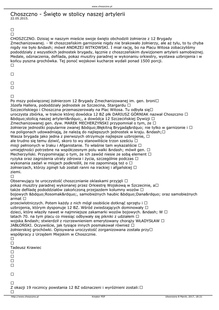 uroczysta zbiórka, w trakcie której dowódca 12 BZ płk DARIUSZ GÓRNIAK nazwał Choszczno „stolicą naszej artylerii”, a dowódca 12 Szczecińskiej Dywizji Zmechanizowanej gen. dyw. MAREK MECHERZYŃSKI przypomniał o tym, że żołnierze jednostki popularnie zwanej „Błękitną Brygadą” nie tylko w garnizonie i na poligonach udowadniają, że należą do najlepszych jednostek w kraju. –