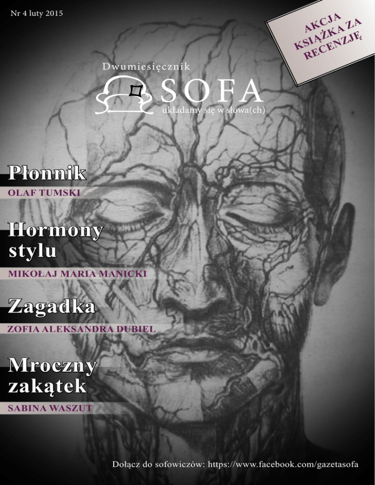 Nr 4 luty 2015 Dwumiesięcznik JA A C AK KA Z IĄŻ NZJĘ S K CE RE S O FA układamy się w słowa(ch) Płonnik OLAF TUMSKI Hormony stylu MIKOŁAJ MARIA MANICKI Zagadka ZOFIA ALEKSANDRA DUBIEL Mroczny zakątek SABINA WASZUT Dołącz do sofowiczów: https://www.facebook.com/gazetasofa Regulamin akcji na stronie: www.sofa-redakcja.pl WSTĘPNIAK ZZZajmująco – z pamiętnika pracoholika Ostatnie miesiące były ciężkie, ale i obfitujące w nowości – nowa strona SOFY, która pewnie przejdzie jeszcze niejedną rozbiórkę i “ubiórkę”; nowa akcja ZZZ, czyli książka za recenzję, która cieszy się dużym powodzeniem (obserwujcie, albowiem nie znacie dnia ani godziny, kiedy nowe pozycje wydawnicze wskoczą na stronę, a Wy dostaniecie szansę, by je zrecenzować. Więcej o akcji na www.sofa-redakcja.pl); nowe cele, wyzwania... i tak dalej. Pół roku pracy za nami, ale ostatnio mówiłam dużo o sofowych perspektywach, więc tym razem skupię się bardziej na tekstach. W prozie prezentujemy osiem miniatur – różnicowanych klimatycznie, z których każdy wyciągnie coś dla siebie, oraz dwa opowiadania – specyficzne i dojmujące. W publicystyce wykiełkowało nam pięć recenzji (mamy głęboką nadzieję, że dzięki akcji ZZZ opublikujemy ich w SOFIE znacznie więcej). Gdyby nie Dariusz Zajączkowski ze swoim Soplicowem, w dziale recenzenckim znów prym wiodłyby kobiety, ale... dla wyrównania szans polecam dwa krwiste felietony. Doktor habilitowany Mikołaj Manicki opowie Wam nieco o hormonach stylu, które niewłaściwie stosowane zagrażają życiu lub zdrowiu czytającego, a Marek Tymoszczuk będzie zastanawiał się, czy zdradzić Wam pewną tajemnicę. Bądźcie czujni! SOFA 02/2015 (4) SPIS TREŚCI PROZA drabble miniatury opowiadania 5 7 8 10 12 14 15 18 19 24 Ziewanie rosomaka (Wojciech Łabędź) Tranquilla (Weronika Stępkowska) Miotacz młotków (Jakub Panfil) Zagadka (Zofia Aleksandra Dubiel) Dwunasty takt (Jan Kowalski) Rozluźnienie pana Pnia (Joanna Kloska) Iskra (Eryk Maciejowski) Zdrowaś, Maryjo, mimo iż (Angelina Els) Heniu (Dariusz Zajączkowski) Płonnik (Olaf Tumski) PUBLICYSTYKA 34 35 38 40 42 44 47 50 recenzje felietony eseje Mroczny zakątek (Sabina Waszut) Dybuk (Ewa Skalec) Lokator do wynajęcia (Aneta Rzepka) Czombrów, czyli prawdziwa twarz Soplicowa (Dariusz Zajączkowski) Moja niemiecka matka (Karolina Kowalcze) Hormony stylu (Mikołaj Maria Manicki) Bo nikomu nie powiem, jak tu jest pięknie (Marek Tymoszczuk) GALERIA AUTORÓW Anna Wąsikowska REDAKTOR NACZELNA/DTP Anna Wąsikowska [email protected] OPRACOWANIE GRAFICZNE Anna Maria Weiss, Joanna Otorowska-Duda, Marcin Wasiński, Leszek Kostuj DZIAŁ PROZY Anna Wasińska [email protected] PROMOCJA/WSPÓŁPRACA Paulina Siedlich [email protected] DZIAŁ PUBLICYSTYKI Beata Kołodziejczyk [email protected] STAŁA WSPÓŁPRACA Anna Grzanek, Anna Dudało, Aneta Rzepka Ziewanie rosomaka Wojciech Łabędź Rosomak uniósł głowę, mrugnął, ziewnął, po czym obrócił się na drugi bok. Swoją drogą – do mnie zadem. W zasadzie go rozumiem, życie w klatce potrafi ustawić perspektywę. Być może na zawsze. To głupie, ale zawsze chciałem go zobaczyć. Ze względu na mobilny tryb życia jest prawdopodobnie najsłabiej poznany ze wszystkich dużych drapieżników lądowych. W Wikipedii napisali, że charakteryzuje się dużą siłą, odwagą, zręcznością i nieustępliwością. Jest z natury samotnikiem. Coś jak ja. Ale nie zapada w sen zimowy. A ja mam wrażenie, że śpię od miesięcy. Zatem teraz jestem w Opolu. Nie sądzę, że kiedykolwiek jeszcze tu wrócę. W zasadzie w moim fachu, jak mawiają, nigdy się nie wie, czy się wróci. Pojutrze będę już przecież w samolocie, lecąc tam, skąd podobno – no właśnie – nigdy się nie wie, czy się wróci. Opolski ogród zoologiczny jest jedynym w Polsce zwierzyńcem, gdzie można obejrzeć rosomaka. Więc tu jestem. Zaciągam się czerwonym lucky strikiem, przyglądam gęstej sierści leżącego leniwie na wybiegu drapieżnego ssaka i nie wierzę, że to on siedzi za kratkami. Ssaka, który – jak twierdzą eksperci – ma problemy z rozmnażaniem się w niewoli. Ja mam problemy nawet na wolności. Jankesi nam powtarzali, że lucky strike’i powinno się nosić wetknięte za hełm. Na szczęście. Żeby mieć fuksa przy bombardowaniu. Zostało im to jeszcze od czasu Wietnamu, gdzie naćpane chłopaki z artylerii, źle odczytując koordynaty, błędnie podawane przez równie naćpane oddziały w dżungli, zrzucały ochoczo miliony dolców w postaci bomb – jak popadnie i w sposób trudny do przewidzenia. Uśmiechnąłem się pod nosem. Ale był to właściwie rodzaj pustego śmiechu. Potem mówiono bowiem, że bohaterskim manewrem uratowałem cały pluton, wyrywając nas z zasadzki. A mi po prostu fajki wypadły. Popierdalaliśmy piaszczystymi ulicami, bo patrole trzeba było odbębnić, a nie było tam przecież nikogo, kto zabroniłby nam jechać tak szybko, jak mieliśmy na to ochotę. Kapral Dzida był tak nawalony, że prowadziłem ja. Bo wypiłem stosunkowo najmniej. W głośnikach radia leciała Coma, konkretnie Spadam, a ja wciskałem pedał gazu ile wlezie. Afgany przeskakiwały przed maską w popłochu, klnąc za nami i wymachując rękoma. Dojeżdżaliśmy do naturalnego zwężenia drogi, podobno – jak napisano w raporcie – idealnego miejsca na zasadzkę. A ja wtedy chciałem zapalić. Wyciągałem lucky strike’a, paczka wypadła mi z łapy i potoczyła się pod nogi. Gdy się po nią schylałem, osunął mi się położony obok beryl, moja indywidualna broń samoczynno–samopowtarzalna, wzór dziewięćdziesiąt sześć. Przestraszyłem się, odruchowo skręciłem kierownicą i przetoczyłem Rosomaka po trójce brudnych dzieci bawiących się na 5 poboczu, chcąc nie chcąc, omijając zwężenie drogi. A drugi wóz wpakował się prosto na minępułapkę. Na zwężeniu. Wszyscy zginęli na miejscu. Rosomak wsta