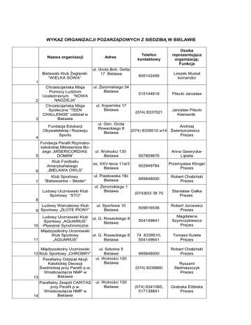 wykaz organizacji pozarządowych z siedzibą w bielawie