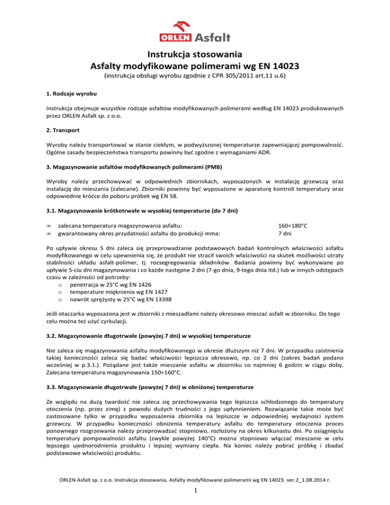 Instrukcja stosowania Asfalty modyfikowane wg EN