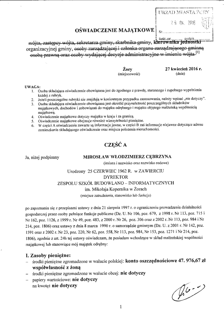 osoba skladająca oświadczenie obowiązana j es1 do zgodn€go z pńwdą, starannego i zupełnego wypehjenia