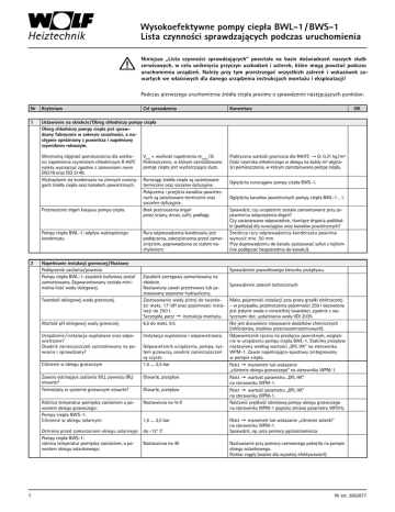 Lista czynności przy uruchamianiu pomp ciepła BWL - Wolf