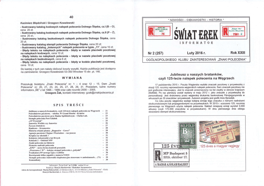Infomator ,,Świat Erek ' nr 2 (258) nakład 50 szt
