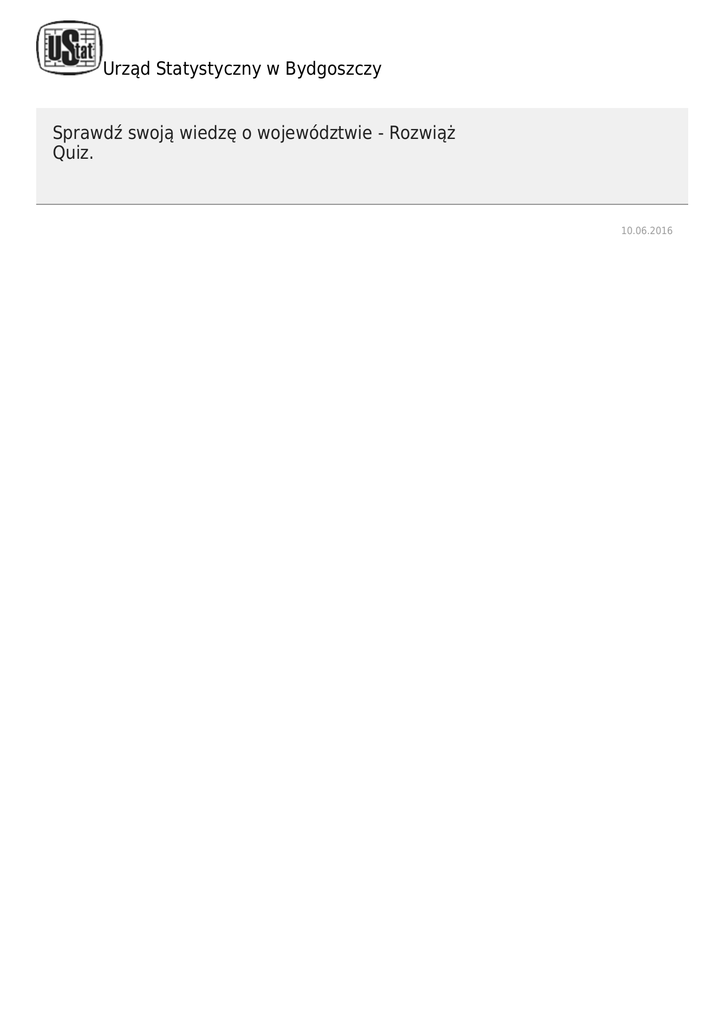 Urząd Statystyczny w Bydgoszczy Sprawdź swoją wiedzę o województwie - Rozwiąż Quiz. 10.06.2016