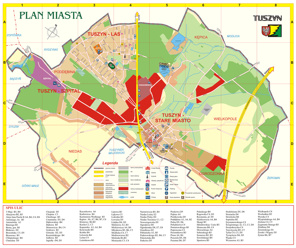 3 4 5 N n to An ów Ka W cz as ow a Krótka Be ma PKS Lelewela kto Proje o cz a a zn a na L eœ PKS ki sz a P TARGOWISKA iu an ym Sz Szpitaln a sk dêb go ie Po d na stycz Tury P ow D³utó ec dn io W w ¹s a ka on M ch on Po u³ TUSZYN - SZPITAL Ko S³ ina LPG GAS PKS c ks. Œci eg D yl e ienneg Po o w wa mk o a Ty ln a £¹ w ko a na Poprzecz iennego TUSZYN STARE MIASTO WIELKOPOLE Polna a ks. Œcieg z pr zn ec M³ yn inie pole rz c sT OCZYSZCALNIA ŒCIEKÓW Z.W.I.K. na C lko Wie da ka ws Nie PKS eg o Zie lo go Rz ks. Œciegien n Œwiêtokrzyska Ko ch a Le œn œn y y GÓRKI MA£E las droga krajowa nr 1 a w ko O si e Bl o a sk zi ñ as ko w a Br ze a ok a W ys zg o P£YWALNIA "OCEANIK" ws ka o n ka ¯e r Ws cho d om sk ieg Koœció³ LPG GAS Stacja gazu ulica teren dzia³kowy Obiekty zabytkowe Restauracja Bar zabudowa wielorodzinna pole uprawne Szpital Hotel / Motel POLICJA OGRODZONKA ¯e ro ms kie g ¯EROMIN o on dz ro Og Parking Stra¿ K¹pielisko Policja Kryta p³ywalnia 4 na PKS Katowice 3 woda STRA¯ P l n ia nia teren zielony Punkt medyczny Sto do o Ogro dz ia Stacja paliw cmentarz D iana Ps zc ze la Szko³a tereny inwestycyjne ka ko w as Piotrkowska or Poczta zabudowa zagrodowa 2 Sto doln Urz¹d Miasta zabudowa jednorodzinna zabudowa us³ugowa dz on A A-1 autostrada PKS AUTOSTRA D as Le No w SAMORZ¥DOWA PKS PRZYCHODNIA ZDROWIA dn Kró le M a ia ok a St jor ar ac oœ cia ki ñs ka G ar bó w, Sz Tu cz uk sz wni yn ek , Pi ³³ y ie Ja g y ln ed as iak Po Ni ed teren przemys³owy oj n s Ni granica miasta Og ro ry ó iceb. ry tow wT da tr Ju n na Ch Ka tr k Pio e Ni h ów ³ uc w, G szó sc ho gu Wi ci a W ii irk ¯w ka ws go cl e i sk Sy POLICJA HALA SPORTOWA Legenda e u¿ iD k r Gó w ze os 1 P Tysi¹clec PKS Kru NIEDAS go rz si¹ Ty LPG GAS PKS TUSZYNEK MAJORACKI wo ie sk m ro ¯e D ka ec No a go a go ow ne pl. Reymonta URZ¥D MIASTA TARGOWISKO ROLNE r Gó w ka ic P Polna Pi ka w ko na en kei ñs zy er la gi £o Psz e Polna a C a ln ie hm PKS W ys e nt ar n ka r Pa Cm dz i Zw r St ód r PKS a a¿ £ó a ck d ro Og ci e .Œ ks ka Górec STRA¯ ln Ty na ws go Rz tar w³a II al. Jana Pa Cm en a dl ow DYLEW E licka Br z o wa ws ka Wola Kazu b Mod ezi w C a A-1 szk i lick AU TO ST RA DA Mo niu a d Mo ic a a ¯y tn i Kê p in wa n y M³ yn op Do m ow icz Ch Pa d er ew PKS wa ñsk a wi go So b na ie r³o sk ie bi sk ie go Ba to re g Ka al. Jana Paw³a II ê dd Chopina i P ko a lic G da ñs k P St ar eg OSRODEK REKREACYJNY "M£YNEK" Pu³askiego at m un Zy g rg B a K tu ozie l a eg ski- ñ sk o esty al o a rz zi m ie Ka Sk a da go d Mo a en M ³yn tow ol ki e STADION W ie lk i eg ic z a as or Sp £o kie o tk a to w a re g ro b Ch ru Pu ³ Kê o p ic M a ja 3 a po w Li Ko œc iu wa bo wa bo Dê G ra Sowiñskiego szki ko w wa cjo Ak a Po dd Kl êb on ow ina a nk a Do br zy go PKS M³ yn drz Mo sk i ks .B rzó ica sk ie Strz elec ka Ch³opickiego Po B¥DZYÑ lna at ow Na icka M ita ni Domowicza n Pabia o ie g dl Mo PKS PODDÊBINA SZPITAL a rie n nto .A œw Sz p ow ñc Cu B a Wolbórk 3 Maja da a M.D¹browskiej 3 Maja Po en e cz wa a a j- M ol MODLICA KÊPICA Wyspiañskiego ko Mickiewicza s tni Krótka Prusa Le ³o w ie sk P Sienkiewicza STRA¯ ow mk Jo d ow ka a ika a ³od ianic w W ol bó rk Projektowany a zi o Sk Pab sn o ewi w isko etn Po a RYDZYNKI S³owackiego ow ow L OŒRODEK REKREACYJNY a ow e n ic bi a Pa ka i ów i Zof dzynk Ry zyñ d B¹ So wa lin Ma z zo Br PKS d³ o Wyspiañskiego Jo Mickiewicza Prusa Sienkiewicza a Piêkn a PKS ern êbin A Poddêbina p Ko dd Po 8 PKS ka TUSZYN - LAS ZOFIÓWKA 7 Gdañsk A £ódŸ, Rzgów PLAN MIASTA 6 a 2 ko w 1 Przystanek autobusowy Oœrodki sportu 5 6 Cza rnoc i n, ¯er E ka omin 7 8 SPIS ULIC 3 Maja B3, B4 Akacjowa B2, B3 Aleja Jana Paw³a II A4, B4, C4, D4 Antoniego, œw. B3 Antonówka A3 Batorego B3 Bema, gen. B3 Blokowa D5 Brzeziñska C5, D5 Brzozowa B3 Ch³opickiego B4 Chmielna D5 Chojniak D5 Chopina C3 Chrobrego B3 Cmentarna D3, D4 D¹browskiej -B4 Dêbowa B3 Domowicza B4, C4 Grabowa B3 Górecka D2, D3 Kozietulskiego B4 Jod³owa B3 Jagie³³y -D4, D5 Kaczeñcowa A6 Kar³owicza B4 Kazimierza Wielkiego B3 Kêpica A6, A7, B6, B7, C6 Klonowa B2,B3 Kocha C2, C3 Kopernika A3, A4, B4 Koœciuszki B4 Krótka B4 Lelewela B4 Leœna C4 Letniskowa B3 Lipowa B3 £¹kowa C5 £okietka B3 £owicka D5 £ódzka D4, D5 Malinowa A3, B3 Mickiewicza A4, B4 M³ynkowa B5, B6, C5 Modlicka C6, C7 Modrzewiowa B2 Molenda B2,B3 Moniuszki C3, C4 Narutowicza B3, B4 Niedas Leœny E2 Niedas Polny D2 Niedas Trzciniec C1, C2 Noworzgowska D5 Ogrodowa D4 Ogrodzonka D8, E7, E8 Osiedlowa D5 Pabianicka A3, B3 Paderewskiego B3, B4, C3 Palestyñska B4 Parkowa D5 Piaskowa D5 Piêkna A4 Piotrkowska D5 Poddêbina A3, A4, B2 Polna D5, D6 Po³udniowa C4 Poniatowskiego B3 Poprzeczna C4 Poziomkowa B3 Prusa A4, B4 Pszczela D5, D6 Pszenna D6, D7 Pu³askiego B4 Rzgowska C4, D5 Reymonta, pl. D5 Sienkiewicza A4, B4 Skargi B3 Sk³odowskiej Curie B3 S³oneczna B4, C4 S³owackiego A4 Sobieskiego B3 Sosnowa B2, B3 Sowiñskiego B4 Sportowa B5 Stodolniana D5, D6 Stra¿acka D4 Strzelecka B4 Szpitalna B2 Szymanowskiego C4 Œciegiennego, ks. C2, C3, D4 Œwiêtokrzyska C4 Turystyczna B5, C5 Tylna C4, C5, D5 Tysi¹clecia D4, D5 W¹ska C4 Wczasowa A3, B3 Wielkopole C8 Wschodnia D5 Wysoka C4 Wyspiañskiego A4, B4 Zielona C4, C5 Zygmunta Starego B3 ródlana D4 ¯eromskiego E6 ¯wirki i Wigury D5 ¯ytnia B6, B7