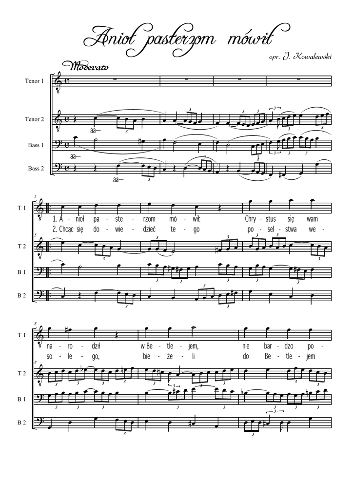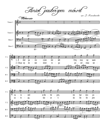 Anioł pasterzom mówił Moderato Vc Tenor 1 Vc Œ Tenor 2 ?c Bass 1 T1 5 T2 V .. V .. 8 V T1 8 T2 B1 B2 œ œ œ ˙ Œ œ œ na - ro so - łe - œ pa - ste do - wie - œ œ œ œ œ ? œ 3 œ 3 œ œ œ œ œœ 3 3 œœœœ 3 œ #œ œ œ œ œ œ ˙ œ #œ œ œ 3 3 œ 3 œ œ œ œ œ œ nie do bar - dzo po Be - tle - jem œœœ œœ œ œ 3 œ œ œ œ œ œ nœ œ œ 3 3 #œ œœœ œ œ œ #œ œ œ œ œ œ œ œ œ œ J 3 3 3 œ œ3 œ b œ œ œ #œ œ œ œ wam we - œœœœœœœ #œ œ œ œ œ œ 3 œ 3 3 3 wBe - tle - jem, bie - że - li œ œ œ 3 œ œ œ Chry - stus się po - sel - stwa 3 œ 3 œ œ œ œ #œ œ Œ mó - wił: te - go 3 œ Œ 3 œ 3 3 3 œœœ œ Œ œ œ œ œ ˙ œ œ œ #œ œ œ #œ œ œ bœ œ œ œ œ nœ œ V œœ œ 3 3 3 3 œ œœœœ ?œœœœœ 3 rzom dzieć 3 3 3 œ œ œ dził go, œ œœ œ œ œœœ œ œ œ œ œ œœœœœ J 3 3 œ œ œœ œœœ œ ˙ œ œ œ œ Jœ 3 3 œ 3 œ 3 œ ˙ ∑ 3 œ œ œœœœ œœœ œ Œ œ aa— œ ∑ 3 #œ œ œ #œ ∑ 3 Œ œ œ ? .. B2 ˙ aa— ∑ œ œ œ œ aa— 1.A - nioł 2.Chcąc się ? .. B1 œ ?c Œ Bass 2 5 œ opr. J. Kowalewski œ œ œ #œ 3 3 3 3 œœ J œ 3 2 œ 11 T1 V œ V œ B1 B2 œœœœœ 3 œœœœ œ 3 œ ? œ ? œœœœ T1 V T2 B1 B2 T1 T2 B1 B2 - V ? œ 3 2. 19 2. ? ? œ 2. ˙ w - 3 3 3 3 œœœœ œœœœ ˙ ˙ œœœœœœ 3 3 3 3 œœœœ œ .. 3 3 3 Œ œ œ 3 3 œ œ œ œ #œ ˙ 3 œ ∑ 3 3 3 3 3 ˙ 3 3 w 3 œ .. ∑ œ œ œ œ œ œ œ œ œ ˙. œ œ œ œ œ œ œ œ bœ œ œ œ œ œ œ bœ œ œ œ 3 3 3 3 ∑ 3 œ œ 3 3 ∑ œœœœœœ œœœœœ œœœœœœœ œ 3 œœœœ 3 3 1. ∑ œœœœ 3 Œ Ó 1. 3 ˙ 3 - œ œ œ œ œ œ .. œ œ œ œ œ œ œ œ œ œ œ œJ œ 3 3 3 1. œœœœœœœœ . œ œ œœœ œ ˙ œ œ . J 3 3 3 wsze - go ry - ję œœœœœœœœœ œœœ œ œœœœœ œ œ 3 3 œœœ œ œœœœ œœœœ Pan Ma 3 3 1. ˙ 3 ˙ 3 œ ˙ Œ 3 œ œœœœ œ œ œ œ œ œœ œ œ nia. fem. œœœ œ œ œœœœ œ 3 3 œ 3 3 œœœ œ œœœœ œœœœ 3 œœœœ Œ 3 œ œœœ œ 3 ˙ ˙ V œœœœ 2. œœœœ œœœœ V ˙. 19 œœœœ œœœ œ 3 ? ˙ œ œ œ œœœœ œ Na - ro - dził się wu - bó - stwie Zna - le - źli Dzie - cię wżło - bie, 3 rze ze œœœœ 15 œ 3 ˙ stwo zJó œ 3 3 15 œ Œ dłym mie - ście. skwa - pli - wie. 11 T2 œ Anioł pasterzom mówił 3 œœœœ 3 3 Œ œœœ˙ Œ 3 ˙. Œ