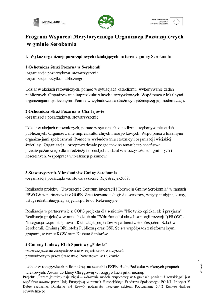 I. Wykaz organizacji pozarządowych działających na terenie gminy Serokomla