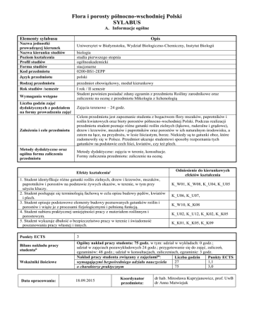 Flora i porosty północno-wschodniej Polski SYLABUS