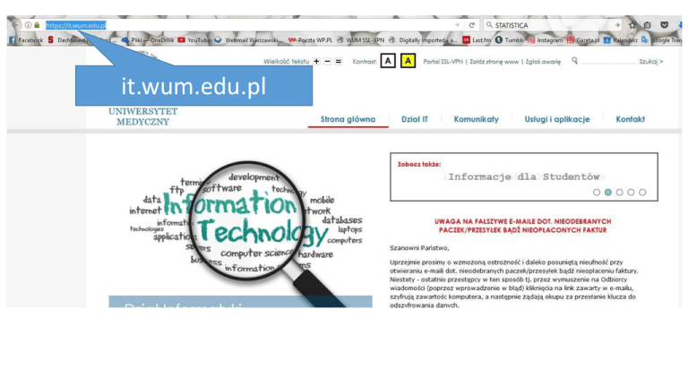 it.wum.edu.pl portal ssl Logowanie: Identyfikator: imie.nazwisko Hasło: PESEL Centrum Pobierania Oprogramowania Pobieranie plików instalacyjnych UWAGA! Program można zainstalować jedynie poprzez aktywację za pośrednictwem e-maila w domenie @wum.edu.pl Kody instalacyjne Pliki instalacyjne