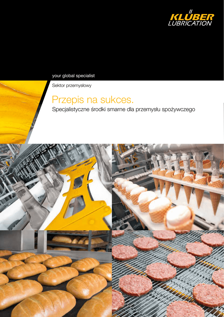 your global specialist Sektor przemysłowy Przepis na sukces. Specjalistyczne środki smarne dla przemysłu spożywczego Mniejsze ryzyko zanieczyszczenia, lepsza sprawność Mniejsze ryzyko skażenia, lepsza sprawność 3 Smary do łożysk tocznych, ślizgowych i prowadnic liniowych 4 Oleje smarne do przekładni i łożysk 8 Środki smarne do użytku w przekładniach i scentralizowanych układach smarowania 13 Oleje smarne do sprężarek i pomp próżniowych 14 Smarowanie zamykarek puszek metalowych 19 Środki smarowe do łańcuchów 20 Środki smarowe do układów pneumatycznych i hydraulicznych 25 Produkty do uszczelnień mechanicznych, montażu i utrzymania ruchu 26 Smary do zaworów i armatury 28 Program wsparcia KlüberEfficiencySupport 29 Właściwy smar, we właściwym miejscu i we właściwym czasie 30 Producenci żywności wiedzą, że dobra receptura to podstawa dobrego produktu. Dotyczy to zarówno składników stosowanych do produktów mięsnych, piekarniczych, mleczarskich, napojów jak i materiałów eksploatacyjnych stosowanych w zakładzie. Opłaca się wybrać właściwy środek smarny o sprawdzonej recepturze. Klüber Lubrication oferuje środki smarne H1 spełniające Państwa wymagania. Czysta produkcja ... Unikanie zanieczyszczenia wyrobów spożywczych podczas ich produkcji przy jednoczesnym maksymalnym usprawnieniu procesów wytwarzania stanowi wyzwanie każdego dnia. Najlepszą praktyką jest korzystanie ze specjalnie rejestrowanych i certyfikowanych środków smarowych, przez co minimalizuje się ryzyko zanieczyszczenia w zakładzie oraz unika zagrożenia dla wieloletniej, dobrej renomy Państwa firmy. W przemyśle spożywczym występuje wiele zastosowań, takich jak mieszadła, dmuchawy, miksery, linie rozlewnicze, piece, sprężone powietrze oraz maszyny pakujące, w których środek smarny używany do smarowania części mógłby zetknąć się z produktami spożywczymi. Istnieje również ryzyko użycia niewłaściwego środka smarowego do danego przeznaczenia i dopuszczenia do kontaktu produktu spożywczego ze środkami smarowymi nieodpowiednimi do zastosowań w przemyśłe spożywczym. Z tego względu zalecamy stosowanie wyłącznie środków smarowych H1 w całym procesie produkcyjnym. ... z wysokowydajnymi środkami smarnymi H1 Rejestracja produktu jako środek H1 opiera się na ograniczonej liści surowców możliwych do uzycia. W myśl wymogów ustanowionych przez Amerykańską Agencję ds. Żywności i Leków (FDA) środki smarne H1 muszą być zgodne z przepisem 21 CFR 178.3570 określającym, że środki smarne H1 nadają się do incydentalnego kontaktu z produktem spożywczym. Ponadto istnieją również inne kategorie, takie jak 3H, K1, HT1, dotyczące produktów do innych zastosowań, takich jak, odpowiednio: środki antyadhezyjne, czyszczące oraz ciekłe nośniki ciepła. Klüber Lubrication dostarcza pełną gamę produktów dla przemysłu spożywczego objętych wymaganymi rejestracjami. Certyfikowana higiena całego procesu smarnych H1 w przemyśle spożywczym i farmaceutycznym. NSF opracowało na podstawie normy ISO 21469 procedurę certyfikacji obejmującą coroczną kontrolę zakładu produkcji środków smarnych przez audytora NSF w celu sprawdzenia ścisłego przestrzegania wymogów higienicznych i zapobiegania skażeniom podczas wytwarzania środków smarnych H1. Aby zakład uzyskał certyfikat zgodności z normą ISO 21469:2006 konieczne może być wprowadzenie pewnych zmian w procesie produkcji, wymagających dużych inwestycji umożliwiających uzyskanie takiej zgodności. Spółka Klüber Lubrication była jedną z pierwszych, które potrafiły spełnić surowe wymagania normy i posiada więcej certyfikowanych zakładów niż jakakolwiek inna firma. Certyfikowane są nie tylko nasze produkty, ale cały proces wytwarzania środków smarnych H1. Zapewnia to pełną ochronę przed zanieczyszczeniem w czasie produkcji środka smarnego. Warto używać wysokowydajnych środków smarowych Środki smarne dla przemysłu spożywczego muszą spełniać wiele wymogów: z jednej strony muszą być zgodne z przepisami żywnościowymi, obojętne fizjologicznie, smakowo i zapachowo oraz atestowane na skalę międzynarodową. Jednocześnie jednak muszą zmniejszać tarcie i zużycie, chronić przed korozją, rozpraszać ciepło i posiadać właściwości uszczelniające. Dlatego wybór właściwego środka smarnego ma kluczowe znaczenie dla poprawy bezawaryjności i wydłużenia okresu użytkowania części oraz elementów. W długiej perspektywie, inwestycja w wysokiej jakości środki smarne zwróci się w postaci oszczędności na utrzymaniu i kosztach operacyjnych. Niniejsza broszura przedstawia nasze wybrane środki smarowe do maszyn stosowanych w przemyśle spożywczym, pogrupowane według typowych zastosowań. Opisywane środki smarne sprawdziły się przez dziesięciolecia, a jednocześnie udoskonalano je dalej w celu ich dostosowania do obecnych warunków i parametrów eksploatacji. Możemy zaoferować właściwe rozwiązanie do niemal każdego zastosowania. Jeżeli dana część lub element nie występuje w niniejszej broszurze, prosimy zasięgnąć rady jednego z naszych specjalistów. Jesteśmy tam, gdzie Państwo Naszym celem jest oferować Państwu wysokiej jakości specjalistyczne środki smarne i usługi na całym świecie w oparciu o wysokie kompetencje techniczne, z których znana jest firma Klüber Lubrication. Cel ten realizujemy za pośrednictwem naszej światowej sieci spółek produkcyjnych i handlowych, kompetentnych dealerów i, co nie mniej ważne, wysoce wyspecjalizowanych ekspertów gotowych spełnić Państwa indywidualne wymagania. ISO 21469 to międzynarodowa norma określająca wymogi higieniczne dotyczące receptury, produkcji i stosowania środków 2 B112006002 / Wydanie 03.16, zastępuje wydanie B112004002 i B114005002 © Zdjęcie na okładce - linia rozlewnicza: Krones AG 3 Smary do łożysk tocznych, ślizgowych i