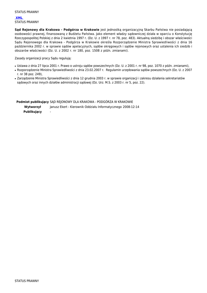 STATUS PRAWNY STATUS PRAWNY XML STATUS PRAWNY Sąd