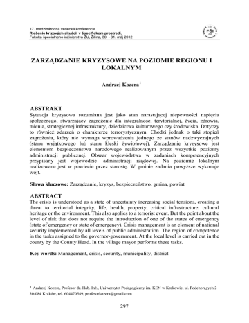 ZARZĄDZANIE KRYZYSOWE NA POZIOMIE REGIONU I LOKALNYM