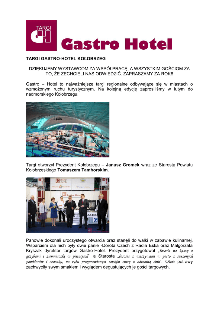 targi gastro-hotel kołobrzeg dziękujemy wystawcom za współpracę
