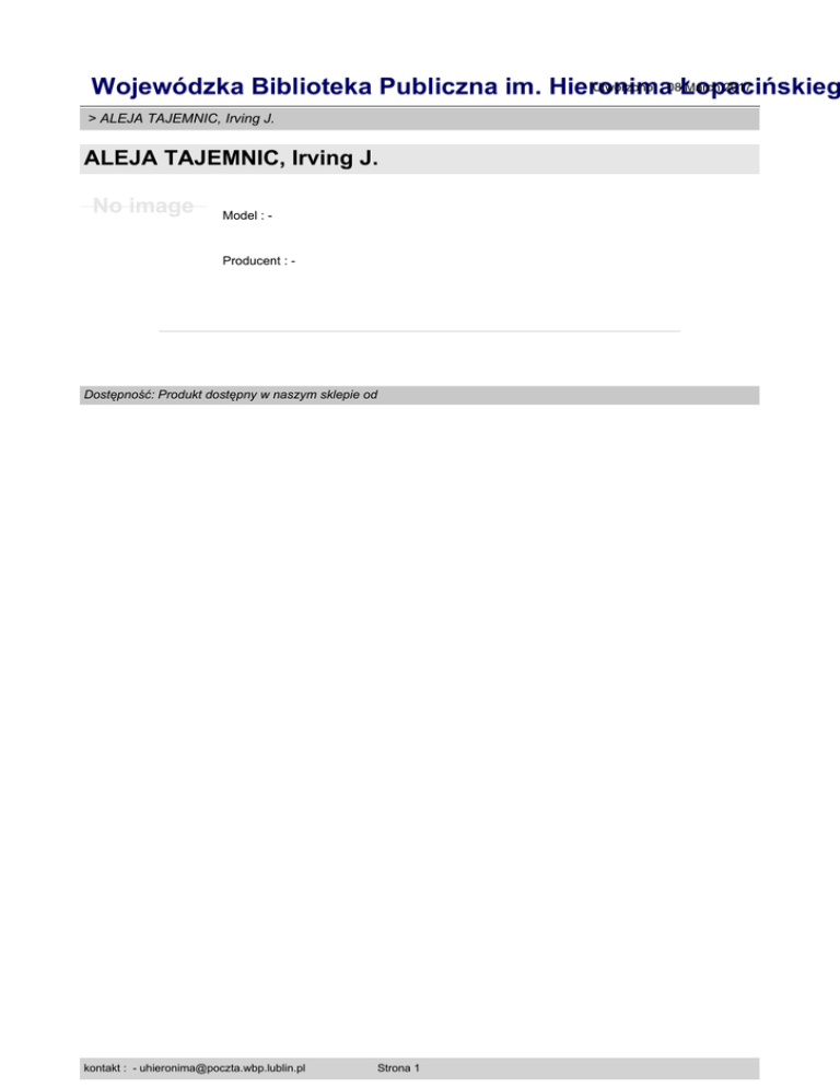 Utworzono : 08Łopacińskieg March 2017 Wojewódzka Biblioteka Publiczna im. Hieronima > ALEJA TAJEMNIC, Irving J. ALEJA TAJEMNIC, Irving J. No image Model : - Producent : - Dostępność: Produkt dostępny w naszym sklepie od kontakt : - [email protected] Strona 1