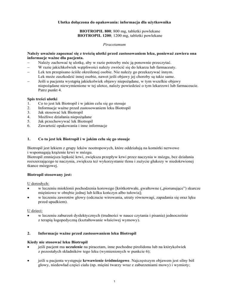 Biotropil a inne leki