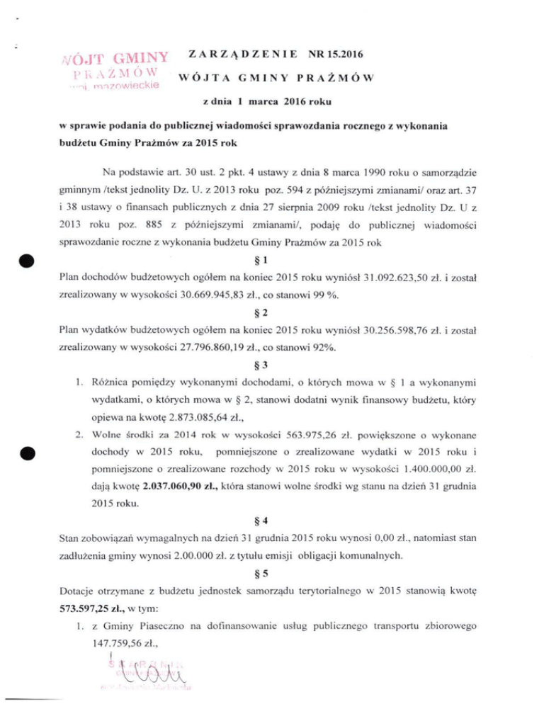 sprawozdanie roczne z wykonania budżetu Gminy Prażmów za 2015 rok