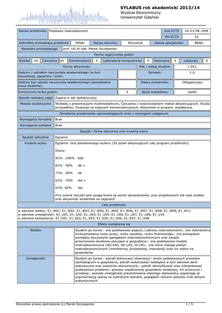 SYLABUS rok akademicki 2013/14