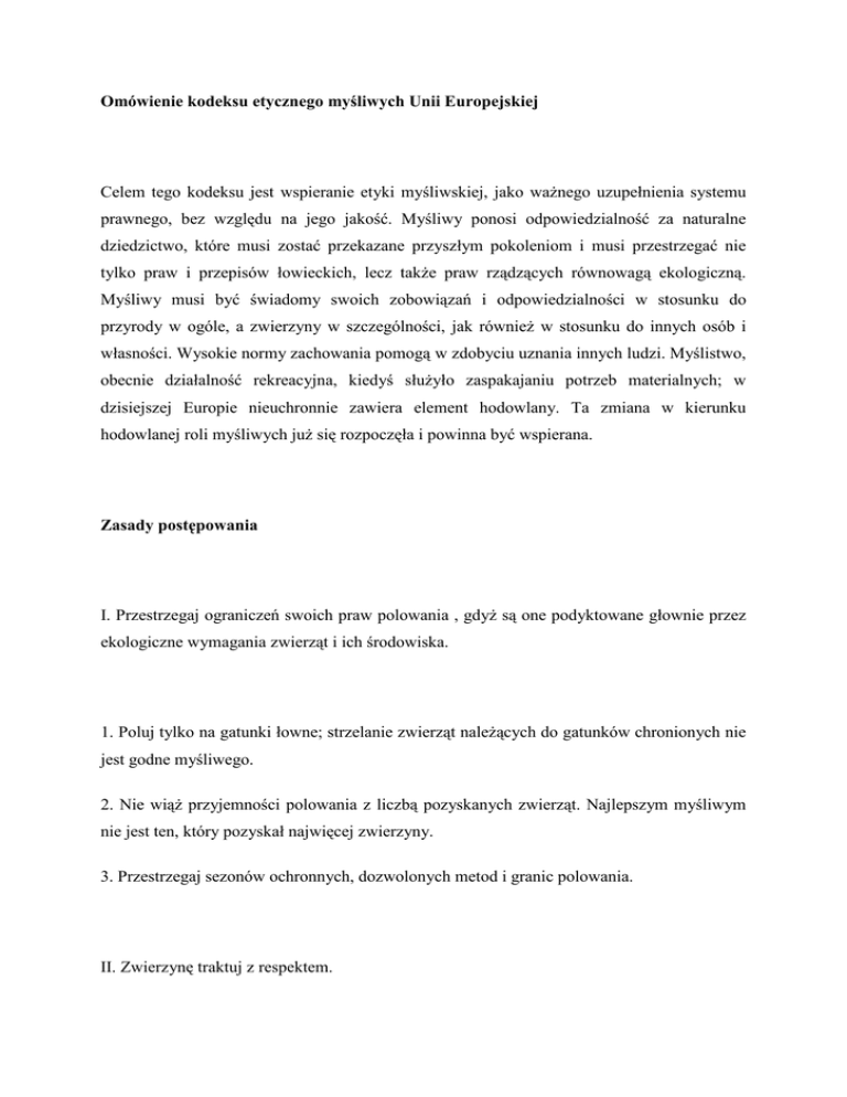 Omówienie kodeksu etycznego myśliwych Unii