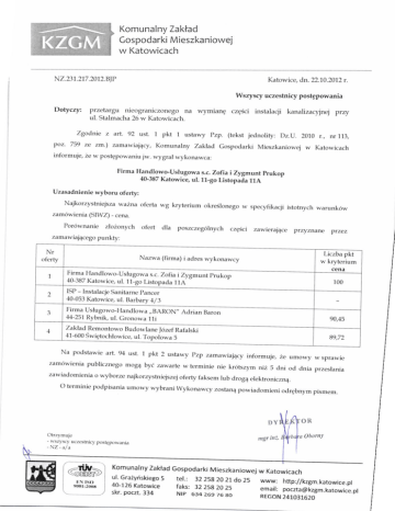 Uzasadnienie wyboru ofertla