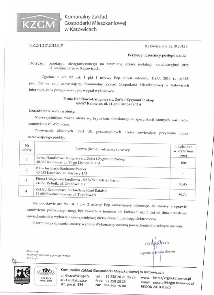 Katowice, dn. 22.10.2012 r.