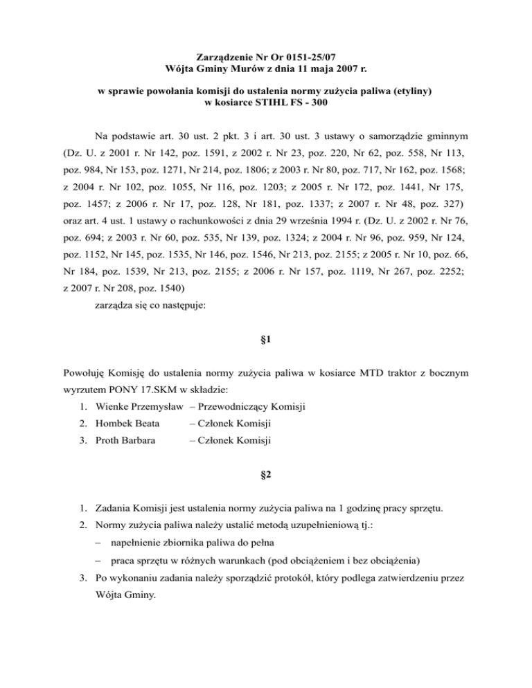 Zarządzenie Nr Or.0151-25-2007 Wójta Gminy Murów z dnia 11