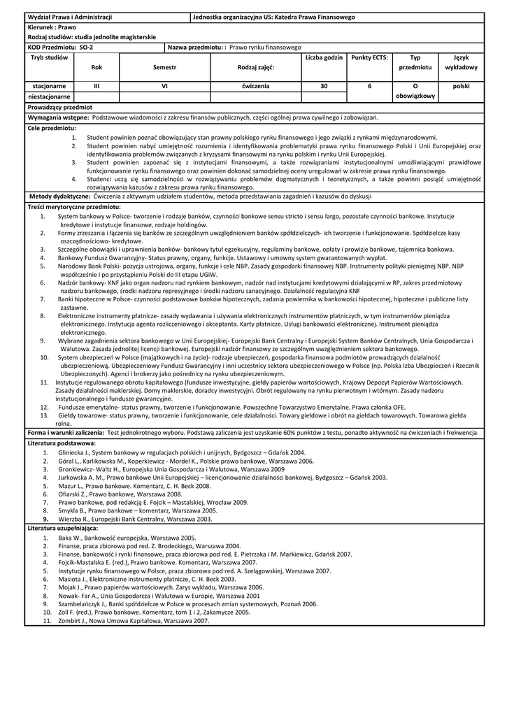 SO-2 Prawo rynku finansowego - Wydział Prawa i Administracji
