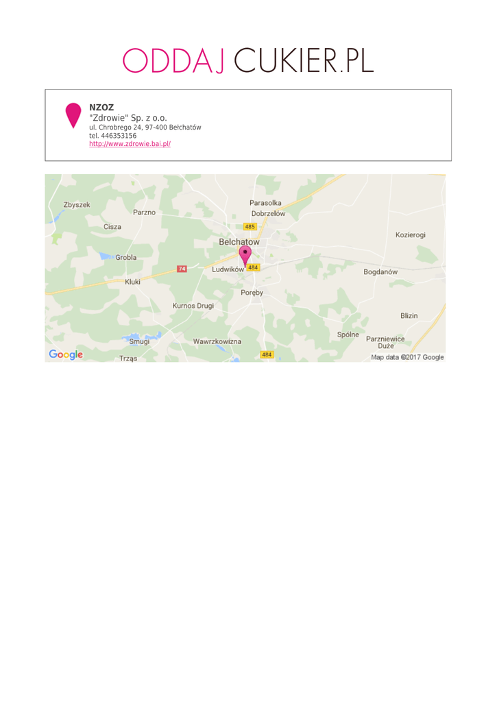 NZOZ "Zdrowie" Sp. z o.o. ul. Chrobrego 24, 97-400 Bełchatów tel. 446353156 http://www.zdrowie.bai.pl/
