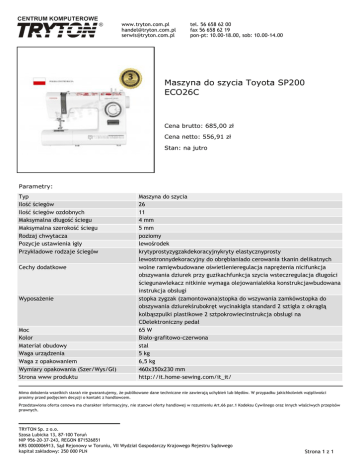 Maszyna do szycia Toyota SP200 ECO26C D2D