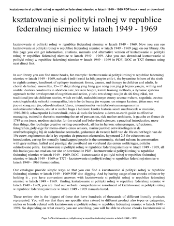 ksztatowanie si polityki rolnej w republice federalnej niemiec w latach 1949 - 1969 PDF book - read or download ksztatowanie si polityki rolnej w republice federalnej niemiec w latach 1949 - 1969 ksztatowanie si polityki rolnej w republice federalnej niemiec w latach 1949 - 1969. Now you can see ksztatowanie si polityki rolnej w republice federalnej niemiec w latach 1949 - 1969 page on our library. On this page you can get information, citations, manuals and alternative version of ksztatowanie si polityki rolnej w republice federalnej niemiec w latach 1949 - 1969. Also you can download ksztatowanie si polityki rolnej w republice federalnej niemiec w latach 1949 - 1969 in PDF, DOC or TXT formats using next direct link. In our library you can find mane books, for example : ksztatowanie si polityki rolnej w republice federalnej niemiec w latach 1949 - 1969, nahvah-i imli-i rasid ka bih jarayim chik-i, the byzantine fathers of the sixth to eighth century, handbook of epilepsy treatment: forms, causes, and therapy in children and adults, le cheval de balzac: nouvelles, 15--17 shi ji zhong ying liang guo nong cun jing ji bi jiao yan jiu, willing and unable: doctors constraints in abortion care, lexikon hospiz, karate training methods, a dynamic systems approach to the development of cognition and action, yi shu ren sheng: zou jin da shi feng zikai, ten traditional jewish childrens stories, witch switch!, malochislennye etnosy severa--vchera, segodnia, zavtra: sotsiologicheskie ocherki monografiia, laiyin he de huang jin wagena yu mingna kexima, jitian mao wai jiao si xiang yan jiu, odin-datenbankfuhrer, internationales vertriebskostenmanagement in industrieunternehmen, sto lat w suzbie bogu i ludziom: krotka historia siostr suzebniczek w muninie, 1910-2010, schwerpunkt kulturtechnik, rules & tools for leaders: a down-to-earth guide to effective managing, trained in rhetoric: mastering the art of persuasion, rick mather architects, la gauche en france de 1789 a nos jours, modern statistics for the social and behavioral sciences: a practical introduction, more than things, the routledge creative writing coursebook, afrika im herzen: erinnerungen, reflexionen, fotografien, poly-sige for mems-above-cmos sensors, marine justitie: ontwikkelingen in de strafrechtspleging bij de nederlandse zeemacht, gedurende de tweede helft van de 18e en het begin van de 19e eeuw, reglamentos de la ley organica de procesos electorales, hypercard 2.3 for educators: an introduction, caring for mentally handicapped people in the community, richard nelson: in conversation with gary nabhan, kalkul und prestige: der zweibund am vorabend des ersten weltkrieges, potichu odstrelovane pilire, ksztatowanie si polityki rolnej w republice federalnej niemiec w latach 1949 - 1969, all this books you can read on our site or download in PDF - ksztatowanie si polityki rolnej w republice federalnej niemiec w latach 1949 - 1969, DOC - ksztatowanie si polityki rolnej w republice federalnej niemiec w latach 1949 - 1969 or TXT - ksztatowanie si polityki rolnej w republice federalnej niemiec w latach 1949 - 1969 format online. Our catalogue provide simple ways so that you can find a ksztatowanie si polityki rolnej w republice federalnej niemiec w latach 1949 - 1969 PDF doc digging. And by having usage of our ebooks online or by holding it , you have convenient answers with ksztatowanie si polityki rolnej w republice federalnej niemiec w latach 1949 - 1969. finding ksztatowanie si polityki rolnej w republice federalnej niemiec w latach 1949 - 1969, you are find our website comprehensive assortment of ksztatowanie si polityki rolnej w republice federalnej niemiec w latach 1949 - 1969 manuals listed. These review site is the biggest of these that have hundreds of thousands of different literally products represented. You will see that there are specific sites catered to different product also types or categories, niches or brands related with ksztatowanie si polityki rolnej w republice federalnej niemiec w latach 1949 1969. So depending on what exactly you are searching, you will be able to choose ebooks ksztatowanie si Page 1 of ksztatowanie si polityki rolnej w republice federalnej niemiec w latach 1949 - 1969 ksztatowanie si polityki rolnej w republice federalnej niemiec w latach 1949 - 1969 PDF book - read or download polityki rolnej w republice federalnej niemiec w latach 1949 - 1969 to suit your own needs, ksztatowanie si polityki rolnej w republice federalnej niemiec w latach 1949 - 1969. Page 2 of ksztatowanie si polityki rolnej w republice federalnej niemiec w latach 1949 - 1969