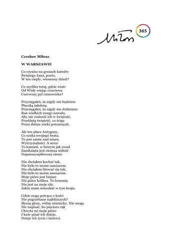Czesław Miłosz W WARSZAWIE Co czynisz na gruzach katedry