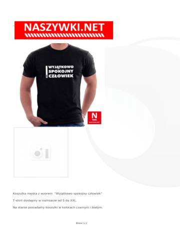 Koszulka męska z wzorem "Wyjątkowo spokojny człowiek" T-shirt dostępny w rozmiarze od S do XXL. Na stanie posiadamy koszulki w kolorach czarnym i białym. Strona 1 z 2 W przypadku zamówień koszulek o innych kolorach prosimy o kontakt - mail: [email protected] / telefon 32 781-30-60 Strona 2 z 2