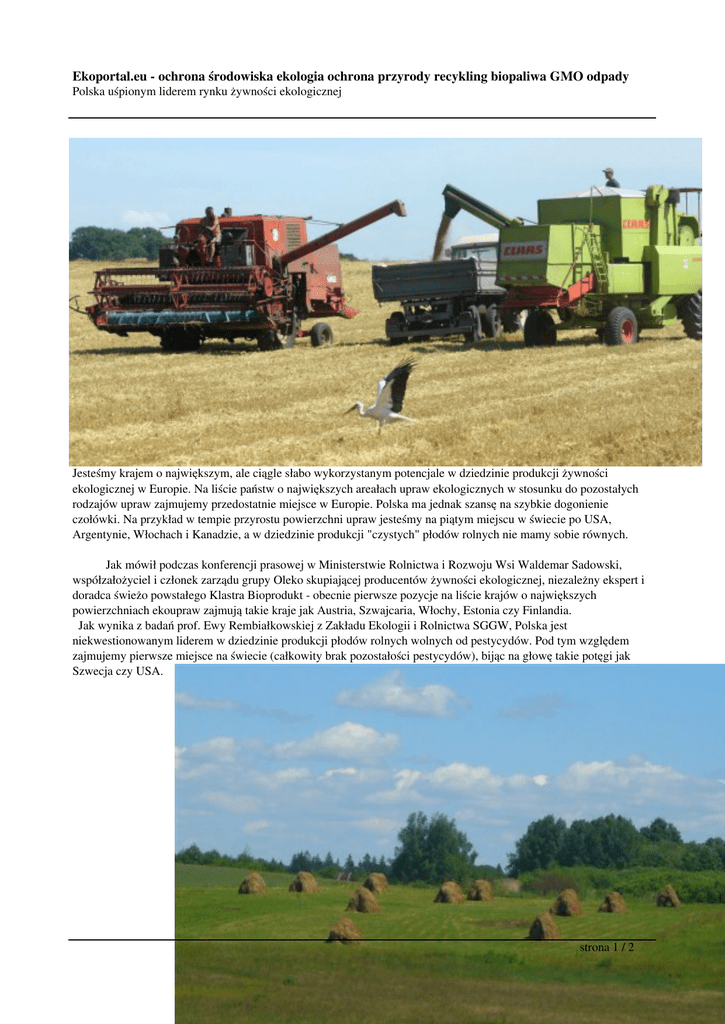 Ekoportal.eu - ochrona środowiska ekologia ochrona przyrody recykling biopaliwa GMO odpady Polska uśpionym liderem rynku żywności ekologicznej Jesteśmy krajem o największym, ale ciągle słabo wykorzystanym potencjale w dziedzinie produkcji żywności ekologicznej w Europie. Na liście państw o największych areałach upraw ekologicznych w stosunku do pozostałych rodzajów upraw zajmujemy przedostatnie miejsce w Europie. Polska ma jednak szansę na szybkie dogonienie czołówki. Na przykład w tempie przyrostu powierzchni upraw jesteśmy na piątym miejscu w świecie po USA, Argentynie, Włochach i Kanadzie, a w dziedzinie produkcji "czystych" płodów rolnych nie mamy sobie równych. Jak mówił podczas konferencji prasowej w Ministerstwie Rolnictwa i Rozwoju Wsi Waldemar Sadowski, współzałożyciel i członek zarządu grupy Oleko skupiającej producentów żywności ekologicznej, niezależny ekspert i doradca świeżo powstałego Klastra Bioprodukt - obecnie pierwsze pozycje na liście krajów o największych powierzchniach ekoupraw zajmują takie kraje jak Austria, Szwajcaria, Włochy, Estonia czy Finlandia. Jak wynika z badań prof. Ewy Rembiałkowskiej z Zakładu Ekologii i Rolnictwa SGGW, Polska jest niekwestionowanym liderem w dziedzinie produkcji płodów rolnych wolnych od pestycydów. Pod tym względem zajmujemy pierwsze miejsce na świecie (całkowity brak pozostałości pestycydów), bijąc na głowę takie potęgi jak Szwecja czy USA. strona 1 / 2 Ekoportal.eu - ochrona środowiska ekologia ochrona przyrody recykling biopaliwa GMO odpady Polska uśpionym liderem rynku żywności ekologicznej Paradoksalnie, opóźnienie gospodarcze oraz słaba industrializacja pomogły polskiemu rolnictwu zachować strukturę ok. 1,7 mln gospodarstw mało i średnio obszarowych - wynika z danych Departamentu Gospodarki Ziemią w Ministerstwie Rolnictwa i Rozwoju Wsi. Gospodarstwa te stosunkowo łatwo mogą uzyskać certyfikaty gospodarstw ekologicznych. Obecnie w Europie prawie 7,3 mln hektarów ziem jest zagospodarowywanych ekologicznie. Stanowi to ponad 4 proc. wykorzystywanej powierzchni rolniczej w Unii Europejskiej. W Polsce uprawy ekologiczne zajmują jedynie ok. 1 proc. całkowitej powierzchni upraw. Ta sytuacja powoli się zmienia. Rośnie zarówno liczba gospodarstw ekologicznych, jak i przetwórców produkowanej w nich żywności. Nowym graczem na tym rynku może stać się utworzony właśnie Klaster Bioprodukt, w skład którego wchodzi 19 podmiotów: producentów, rolników, zakładów przetwórstwa rolno-spożywczego, organizacji rolniczych, instytutów naukowych (Instytut Biotechnologii, SGGW), organizacji samorządowych i pozarządowych związanych z rynkiem żywności ekologicznej. "Jego powstanie wynika z chęci stworzenia wspólnej polskiej marki, która będzie w stanie stawić czoła rosnącej globalnej konkurencji. Zgodnie z naszym planem strategicznym chcemy ten cel osiągnąć do roku 2020" - mówi Marek Kubara, współzałożyciel i członek Zarządu Klastra. Źródło: Euro PAP strona 2 / 2