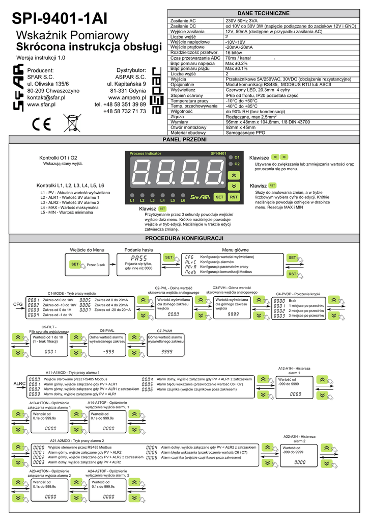 Skrócona instrukcja obsługi SPI-9401-1AI