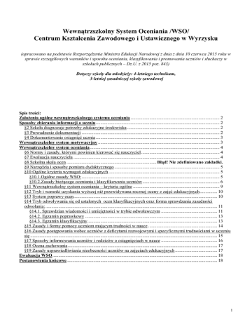 Wewnątrzszkolny System Oceniania /WSO/ Centrum Kształcenia