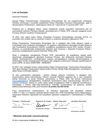 Sprawozdaniu Finansowym, obejmującym okres od 1 stycznia do 31 grudnia 2001 roku.