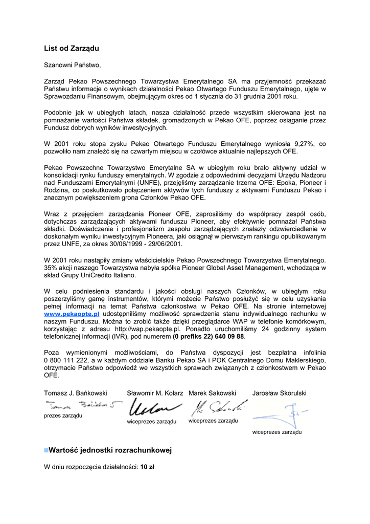 Zarząd Pekao Powszechnego Towarzystwa Emerytalnego SA ma przyjemność przekazać
