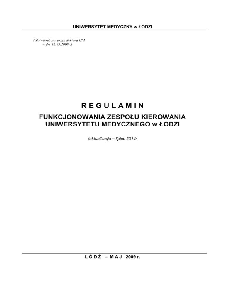 Regulamin funkc. ZK UM-2014 - Uniwersytet Medyczny w Łodzi