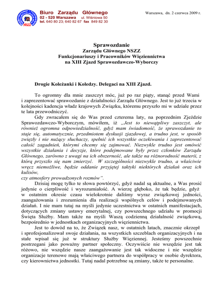 Sprawozdanie - NSZZ Funkcjonariuszy i Pracowników więziennictwa