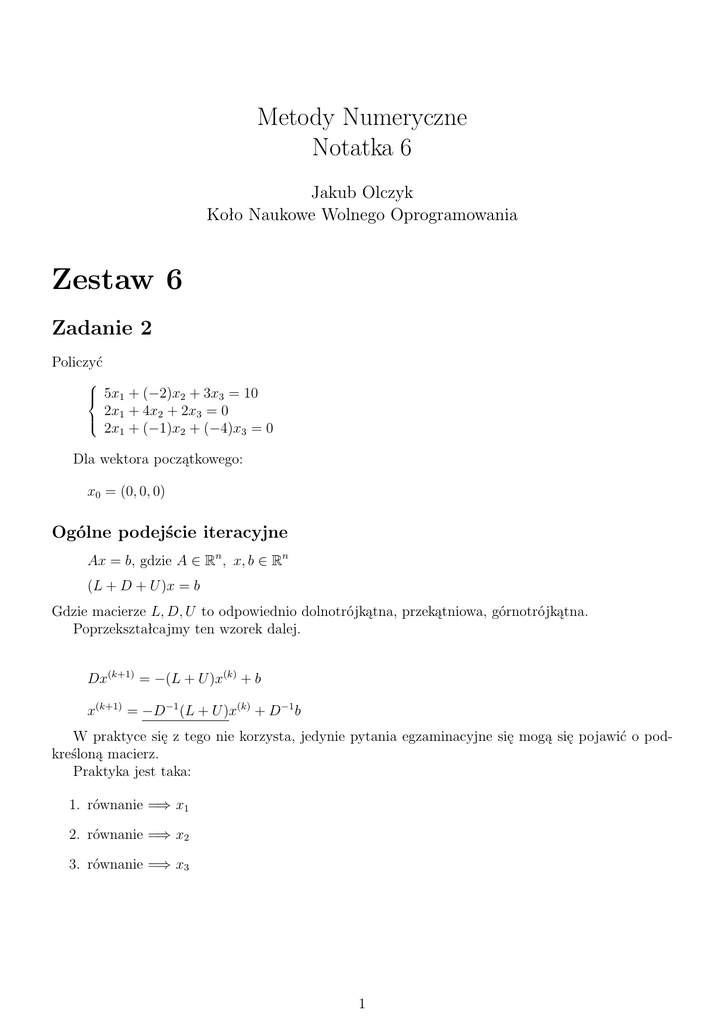 Należy pamiętać, że dominująca przekątniowo ma być macierz A. W tym wypadku mamy metody